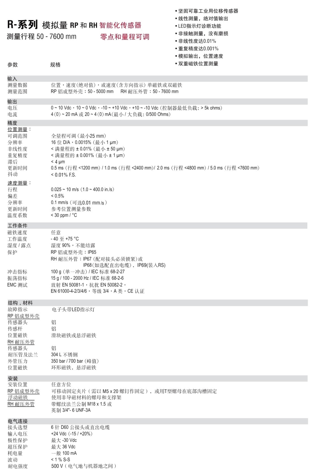 主頁 > 產(chǎn)品展示 > 位移傳感器 > R系列RPRH磁致伸縮位移傳感器